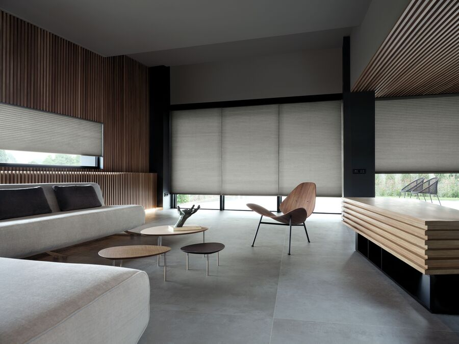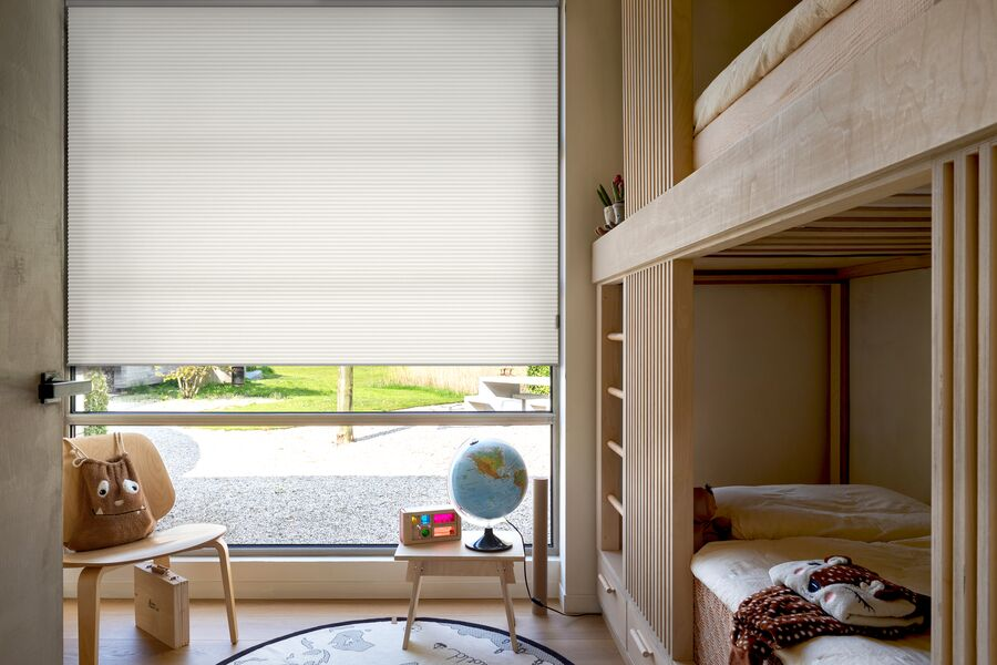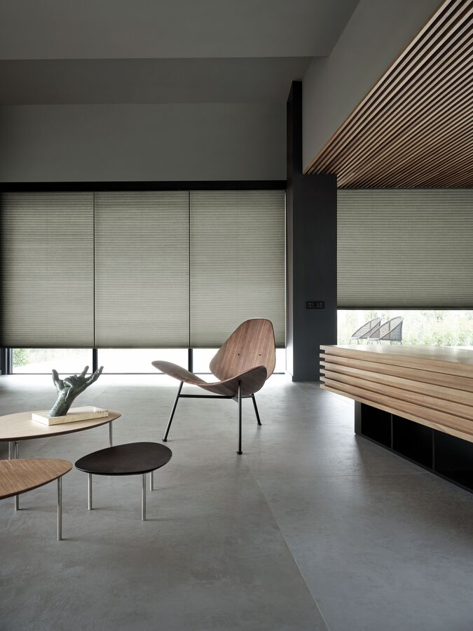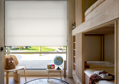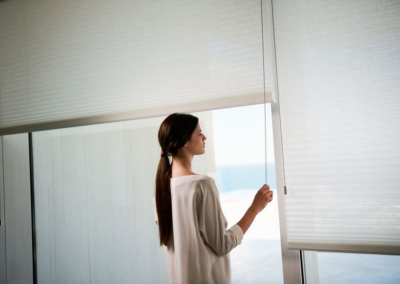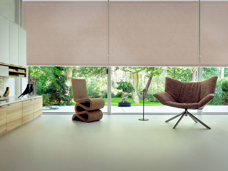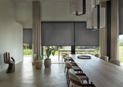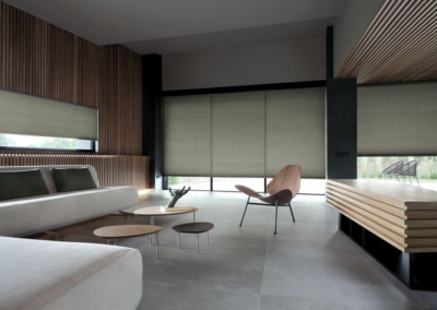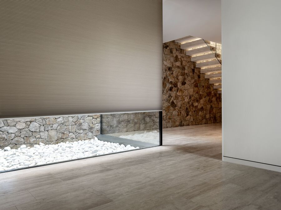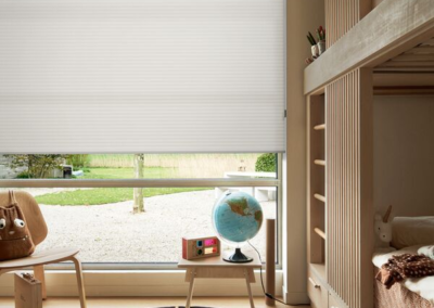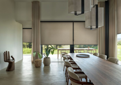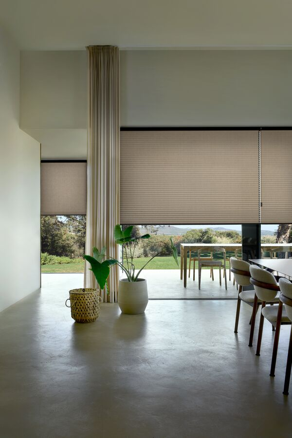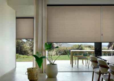 A pleated honeycomb blind that hangs freely from the top rail, offering insulation and light control. The cellular structure traps air, improving thermal efficiency while maintaining a clean, modern appearance. Suitable for both residential and commercial interiors.