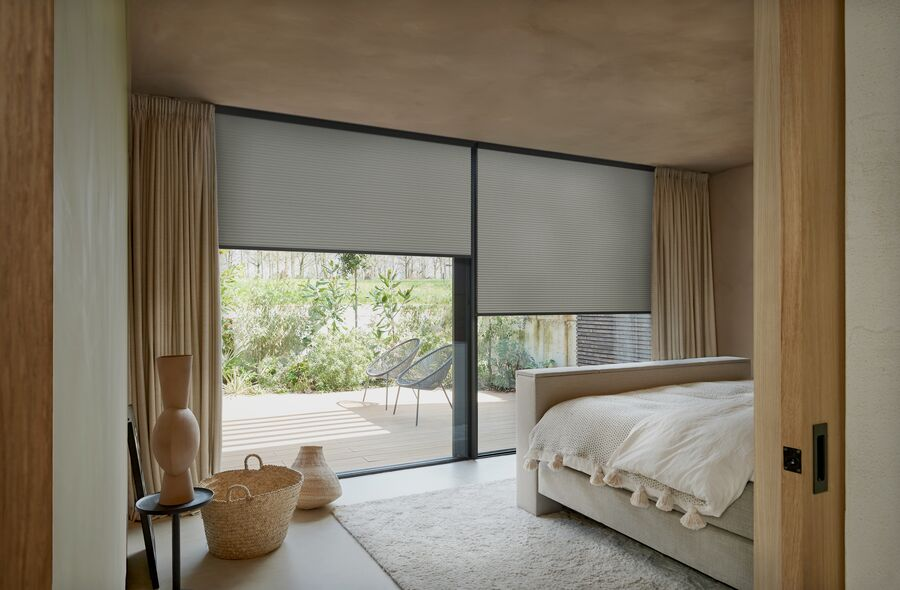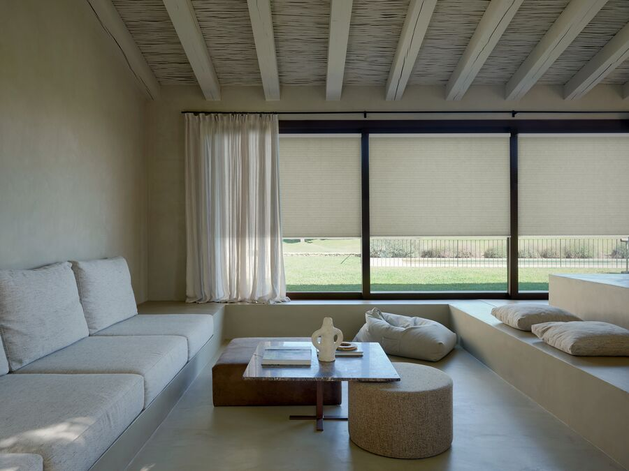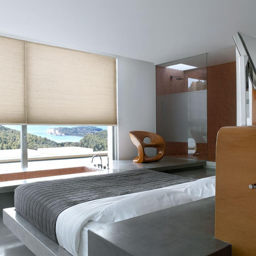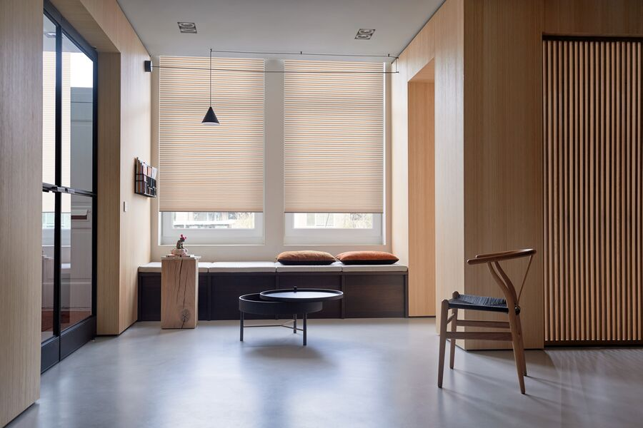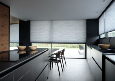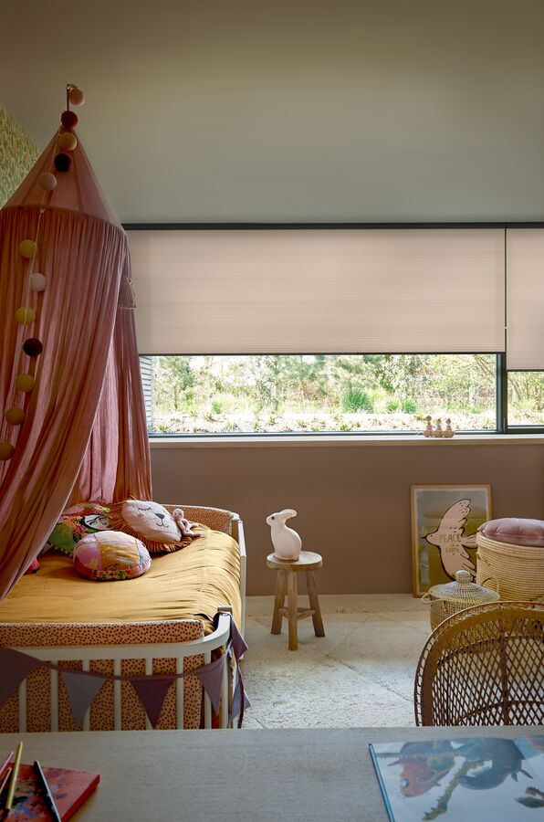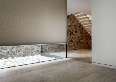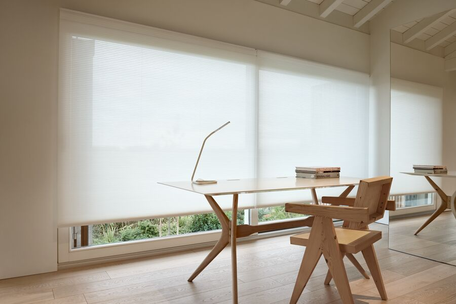 A pleated honeycomb blind that hangs freely from the top rail, offering insulation and light control. The cellular structure traps air, improving thermal efficiency while maintaining a clean, modern appearance. Suitable for both residential and commercial interiors.
