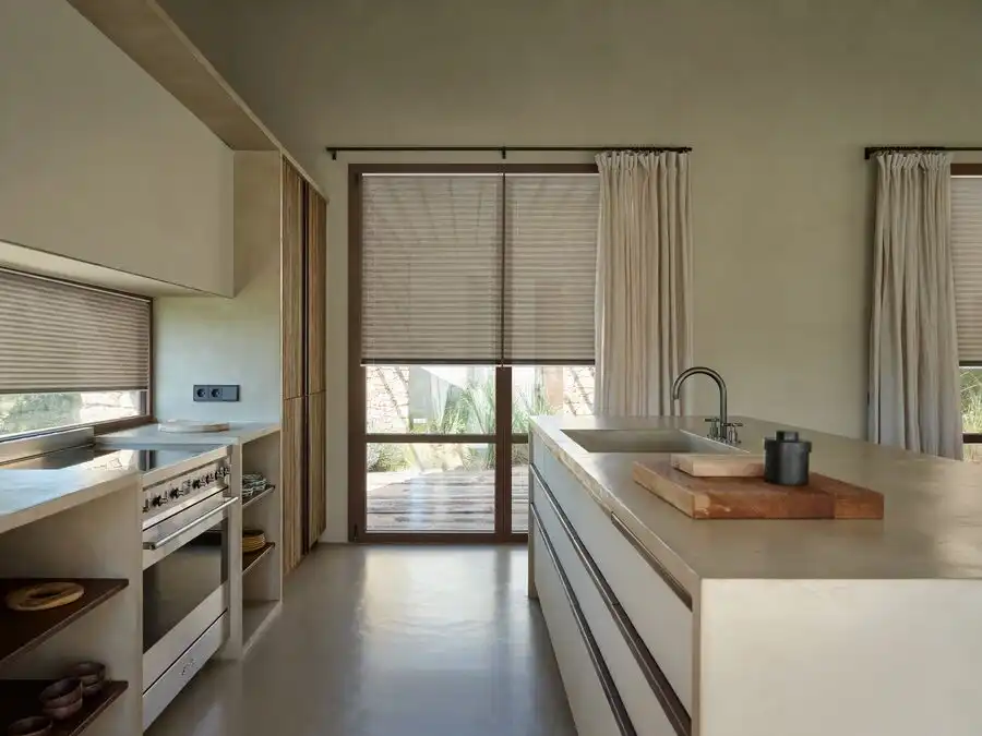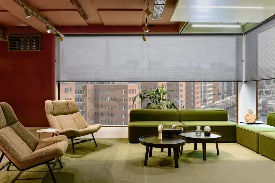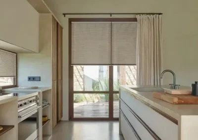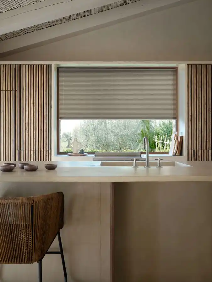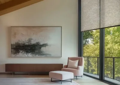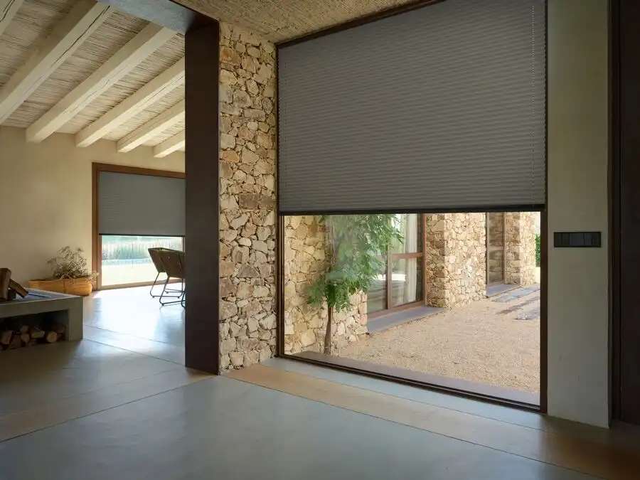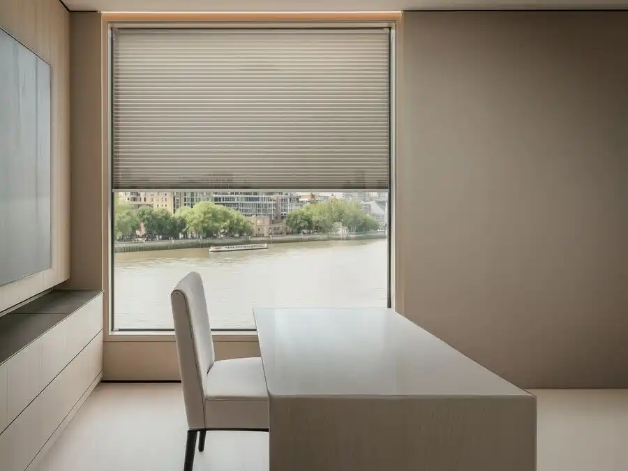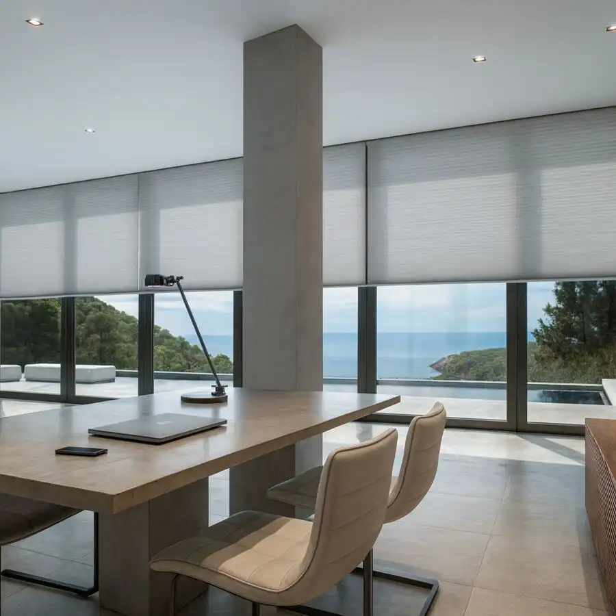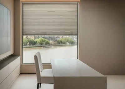 A frameless blind system fixed directly onto the glazing using specialist adhesive strips. No drilling required. Ideal for inward-opening windows, tilt-and-turn systems, and rental properties where minimal installation impact is required.