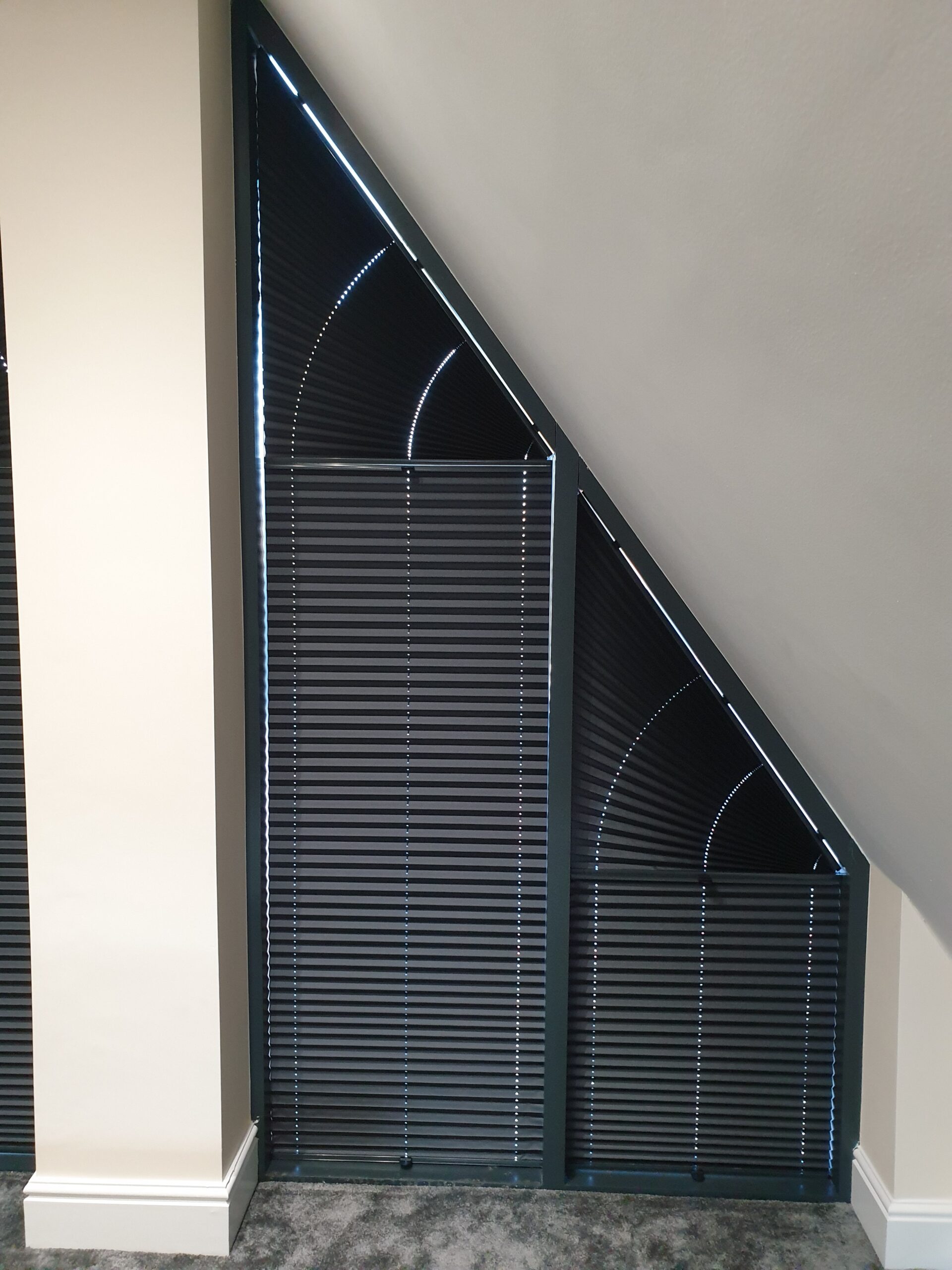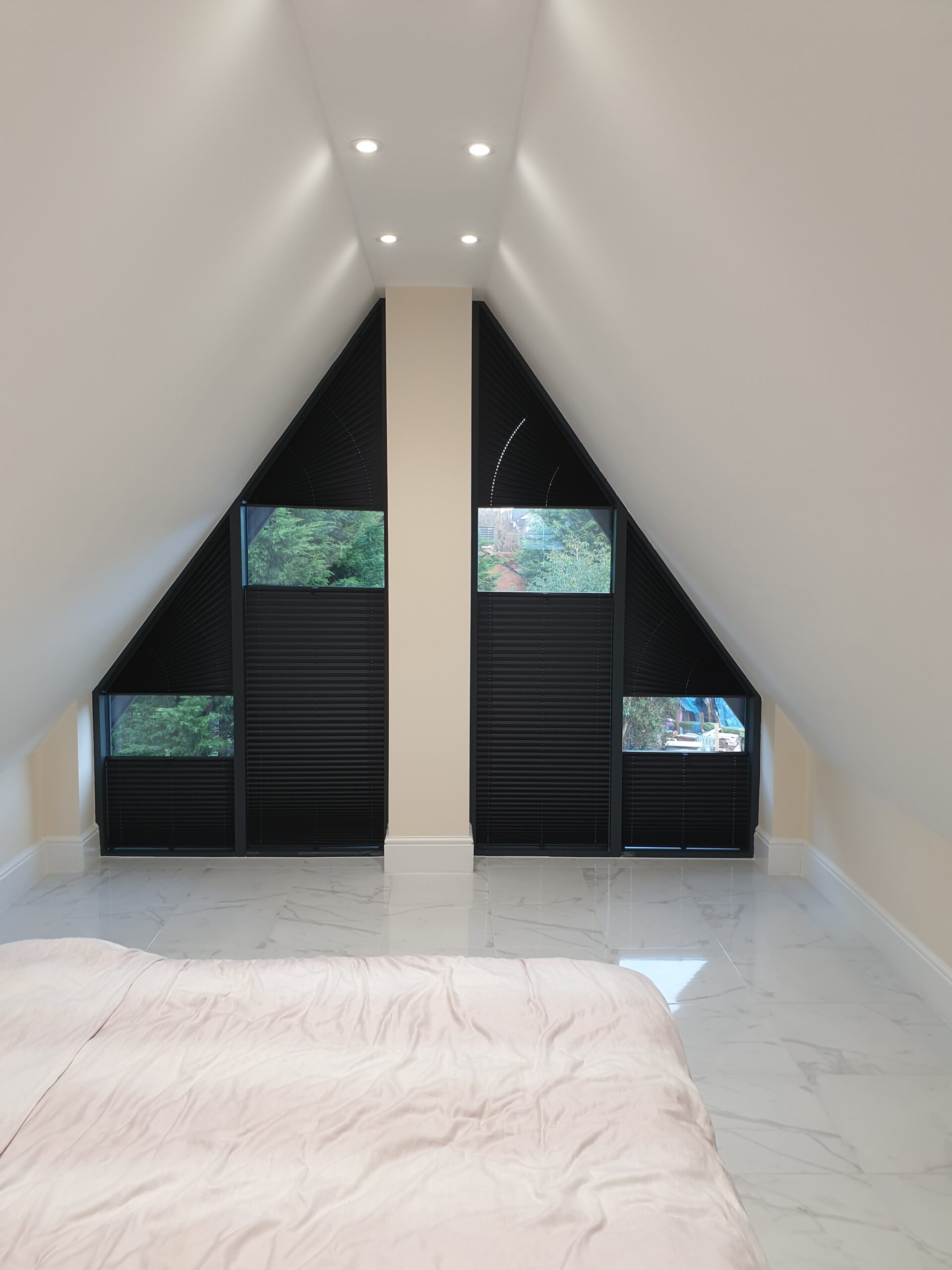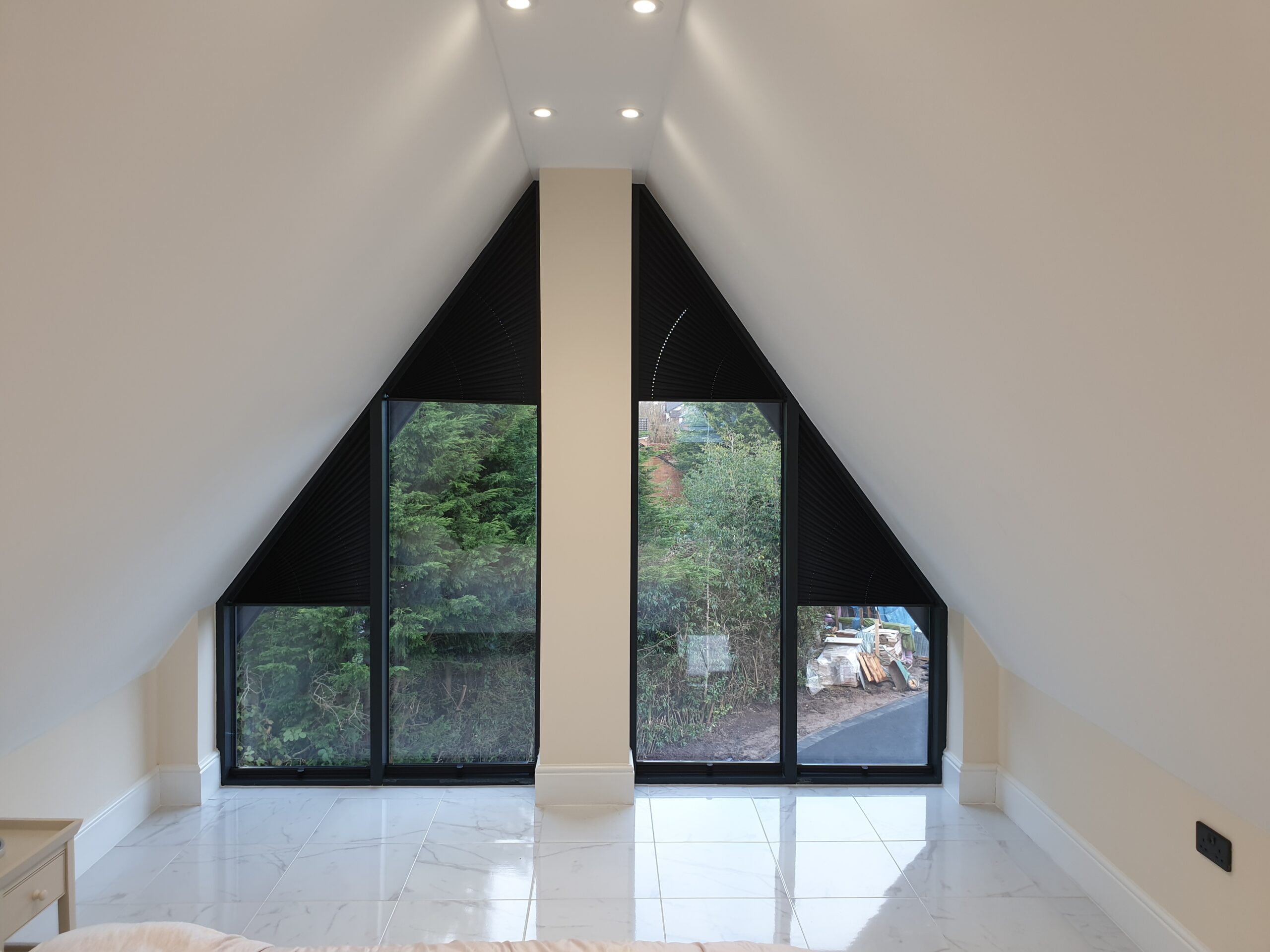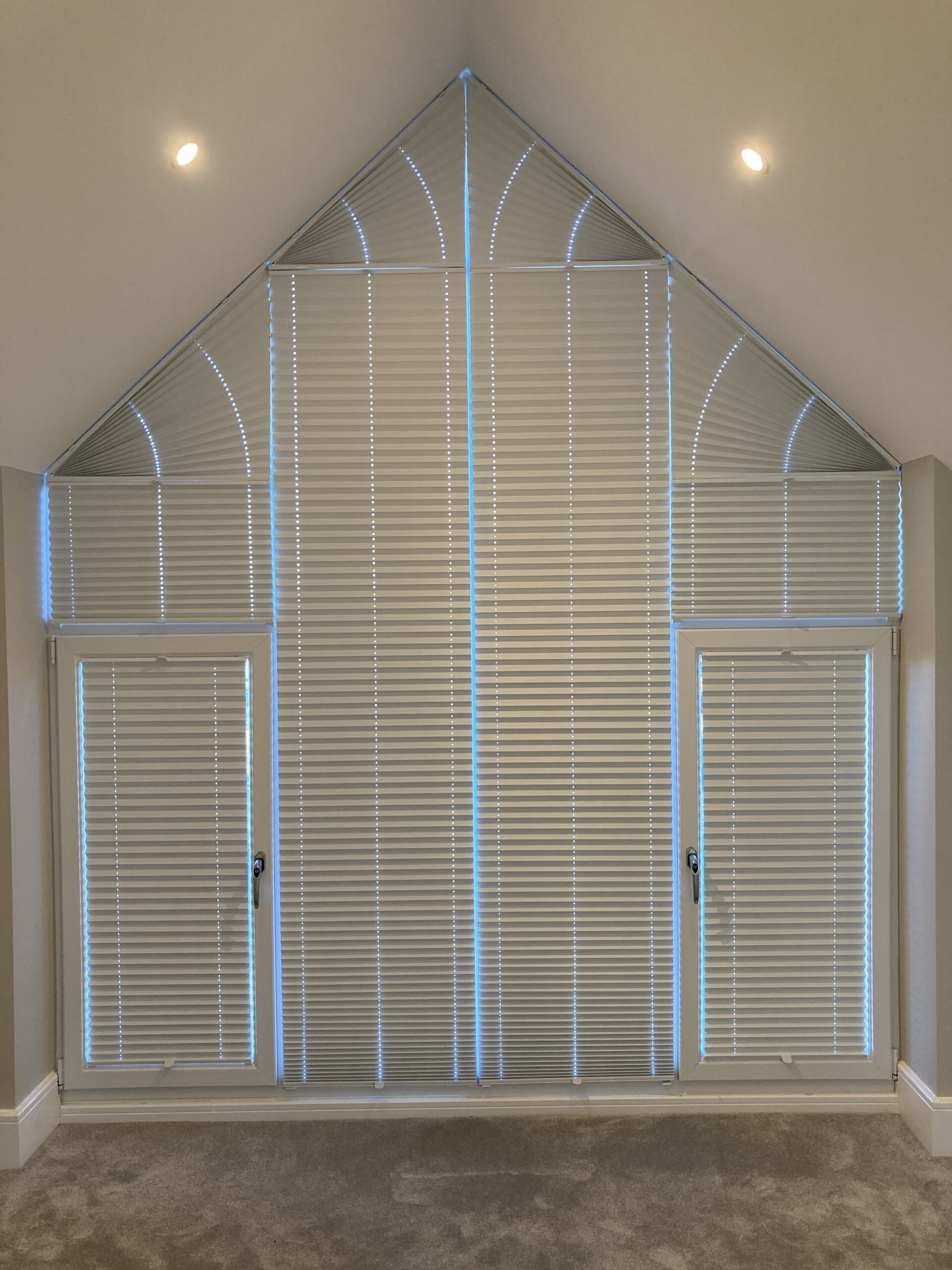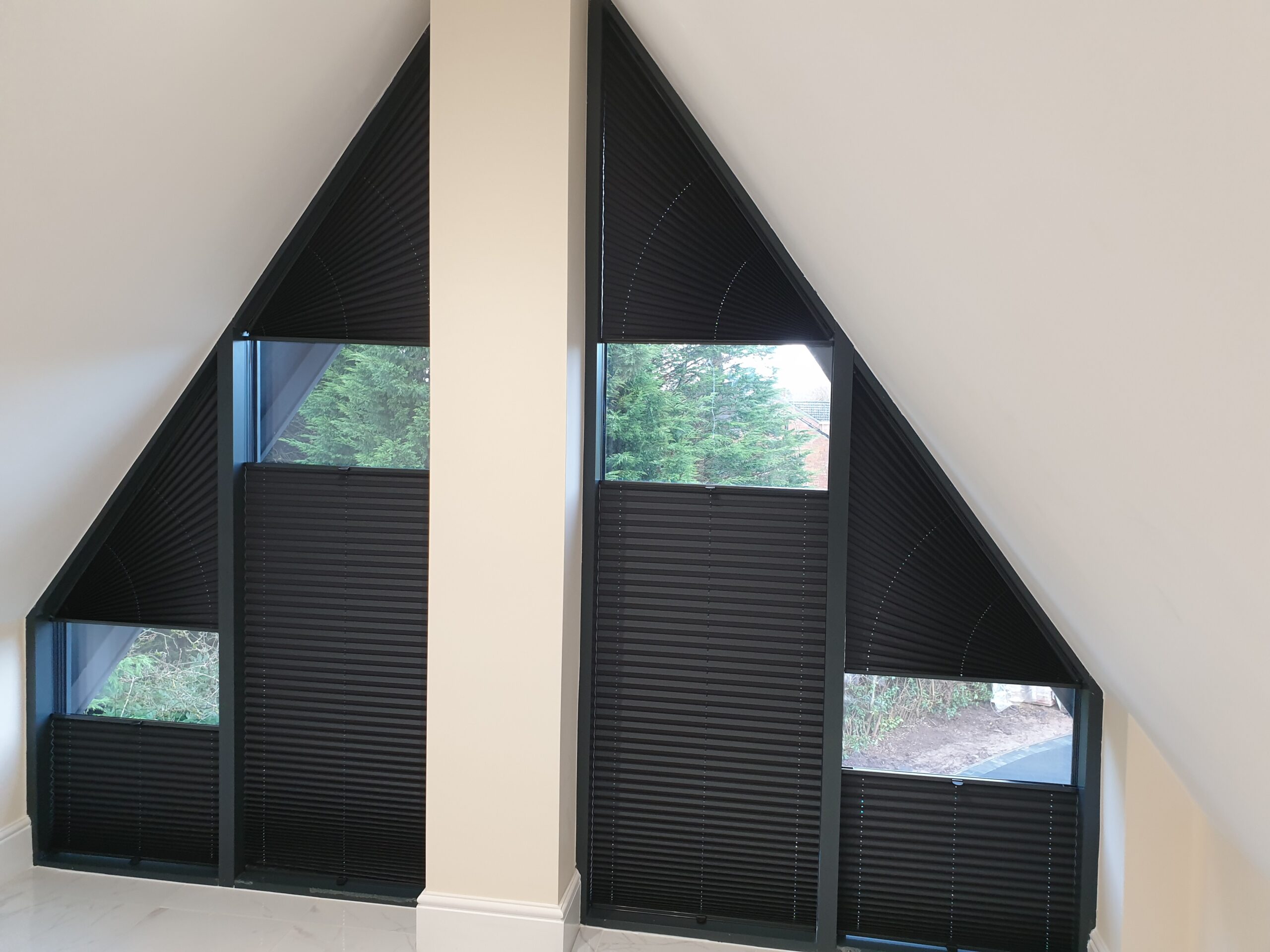 Pleated Shaped Blinds combine stunning design with unmatched flexibility. With the vast amount of available Benthin systems, they are our ‘go-to’ solution