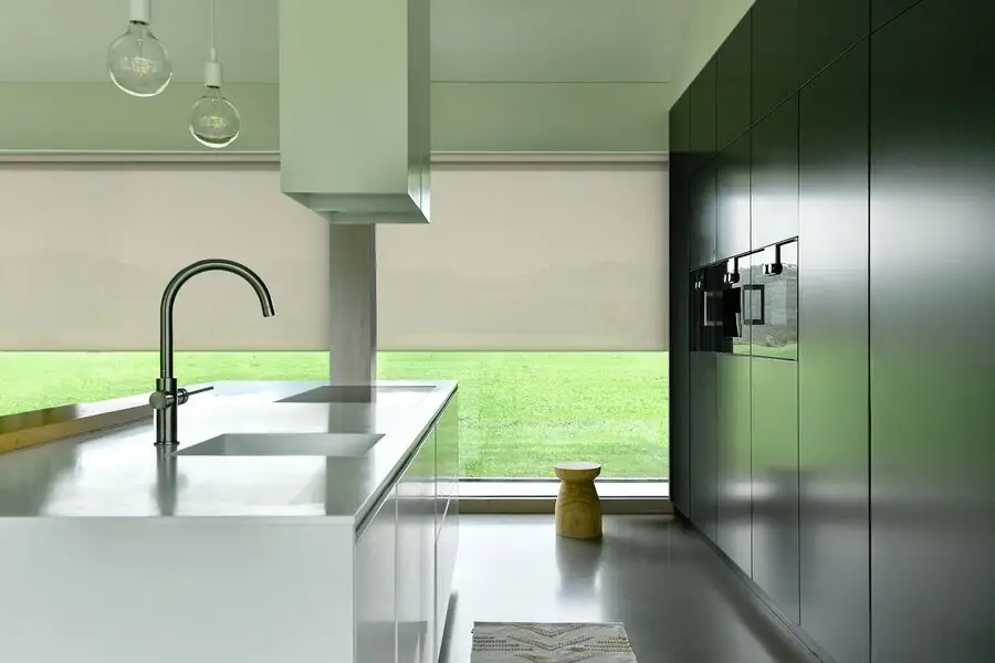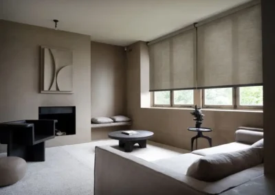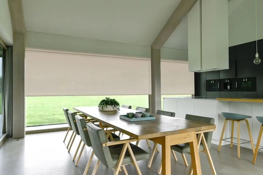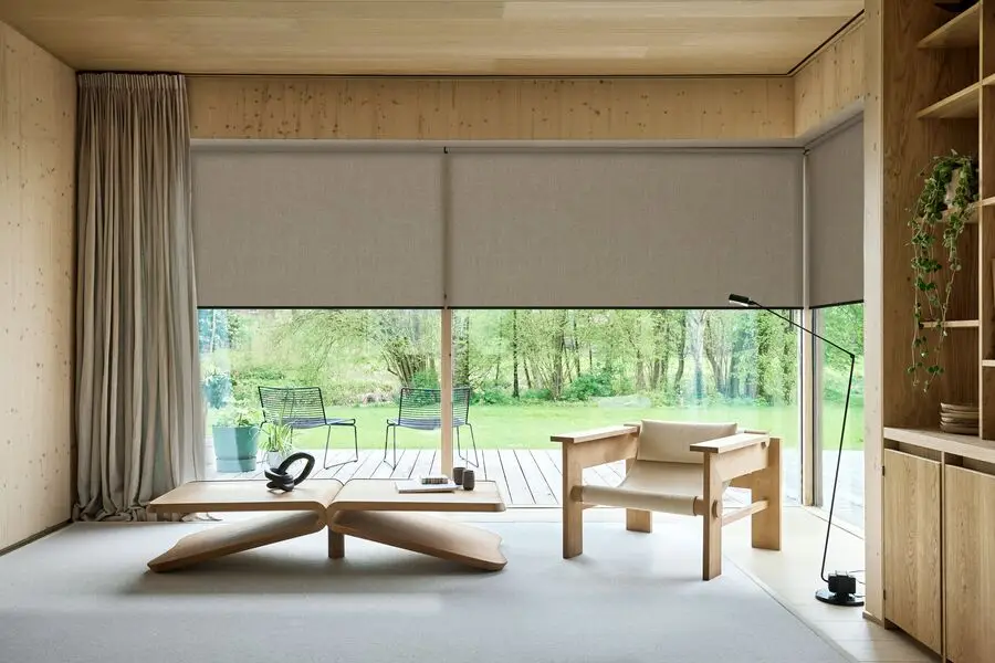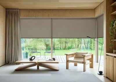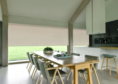 A classic roller blind system where the fabric rolls around a top tube and hangs freely without side guides or framing. It is face-fixed or recess-fitted and suits standard windows, large openings, and doors. Available in blackout, screen, and light-filtering fabrics, with manual or motorised operation.